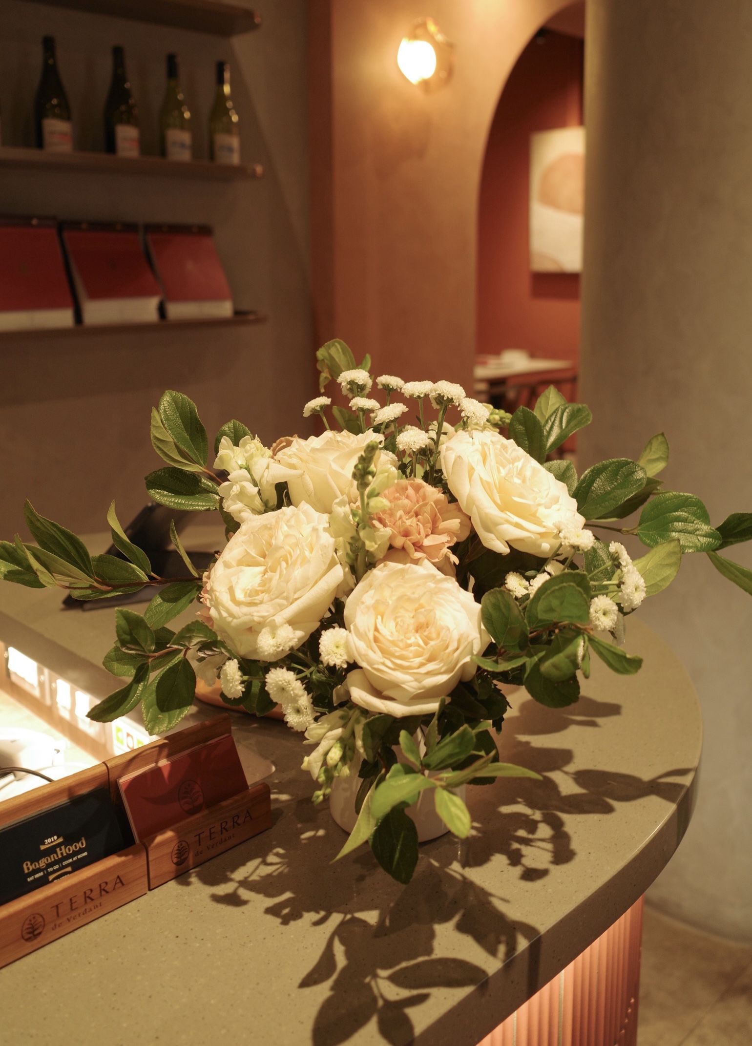 櫃台上方使用高仿真植物擺設