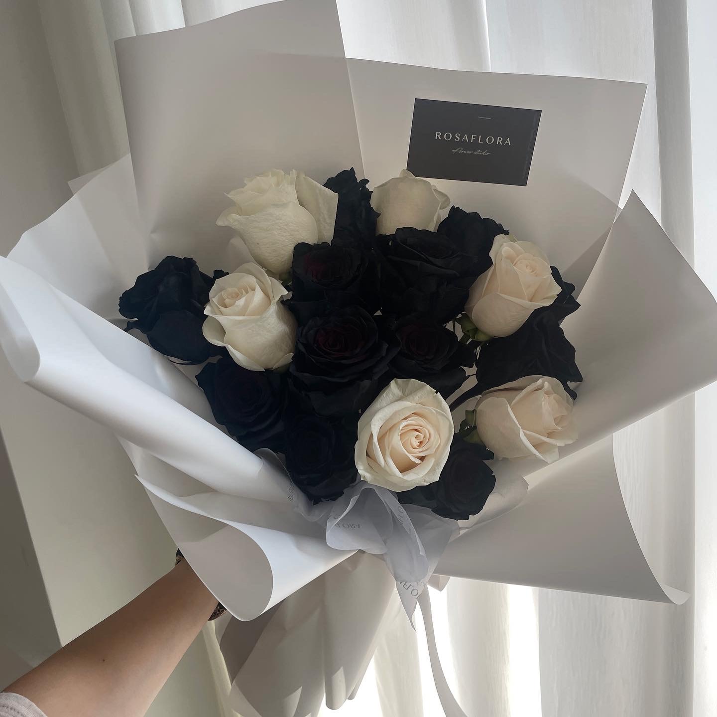 預算高一點可以選擇頂級進口厄瓜多玫瑰花束,珍貴的特殊黑玫瑰搭配白玫瑰